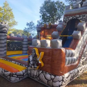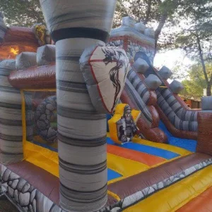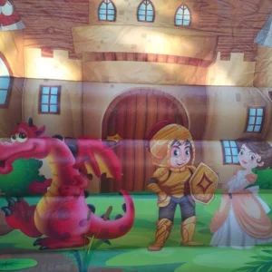 Remontez le temps au Moyen Âge avec notre Château Gonflable Médiéval ! Cette structure spectaculaire transporte vos enfants dans l’univers des chevaliers, des dragons et des princesses. Les remparts colorés, les tours imposantes et les drapeaux flottants créent une ambiance médiévale parfaite pour revivre les plus grandes légendes chevaleresques.