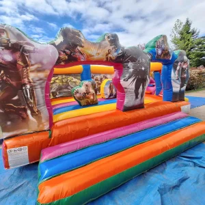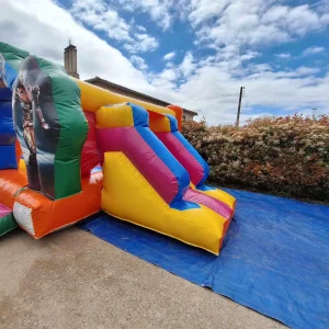 Ce château gonflable plonge les enfants dans l’action des comics et films de super-héros. Avec ses visuels dynamiques représentant des héros en pleine action, leurs symboles emblématiques et une atmosphère de QG secret, cette structure transforme chaque saut en mission de sauvetage du monde.