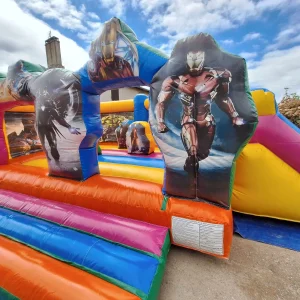 Entrez dans l’univers épique des super-héros avec notre Château Gonflable Super-Héros ! Cette structure spectaculaire célèbre les plus grands justiciers masqués et personnages à super-pouvoirs. Capes, masques et aventures héroïques attendent vos enfants dans ce château où tout devient possible.