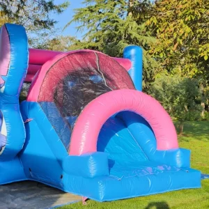 Ce combo gonflable offre deux activités en une seule structure : espace de rebond dans l’univers hawaïen et glissade rapide pour doubler le plaisir. L’installation optimisée permet un flux continu pour les anniversaires thématiques Disney et les kermesses.