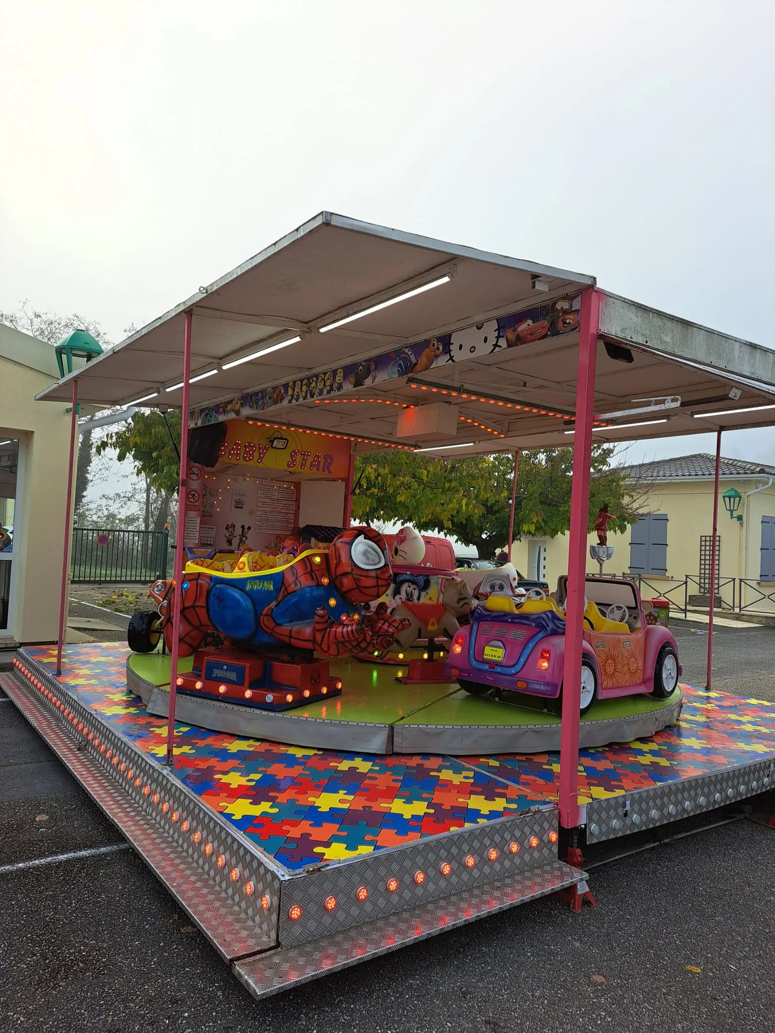 Structure idéale pour les anniversaires privés grands jardins, les comités des fêtes villages, les kermesses écoles maternelles, les centres de loisirs petite enfance, les marchés de Noël communaux et tous les événements où vous voulez offrir aux tout-petits leur première expérience magique de manège.