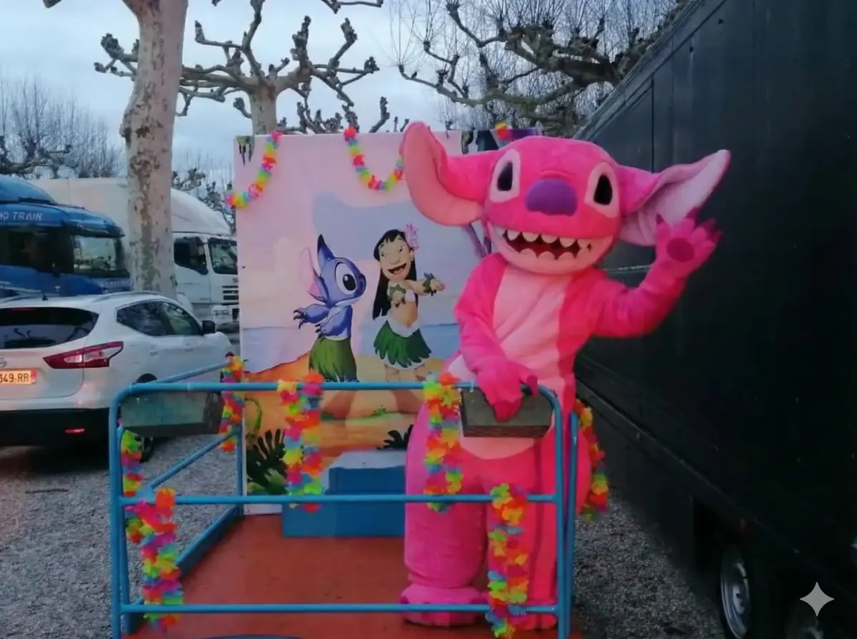 Structure idéale pour les anniversaires filles 2-10 ans, les kermesses écoles maternelles, les fêtes familiales Disney, les centres de loisirs et tous les événements où vos petites princesses rêvent de rencontrer la cousine de Stitch.