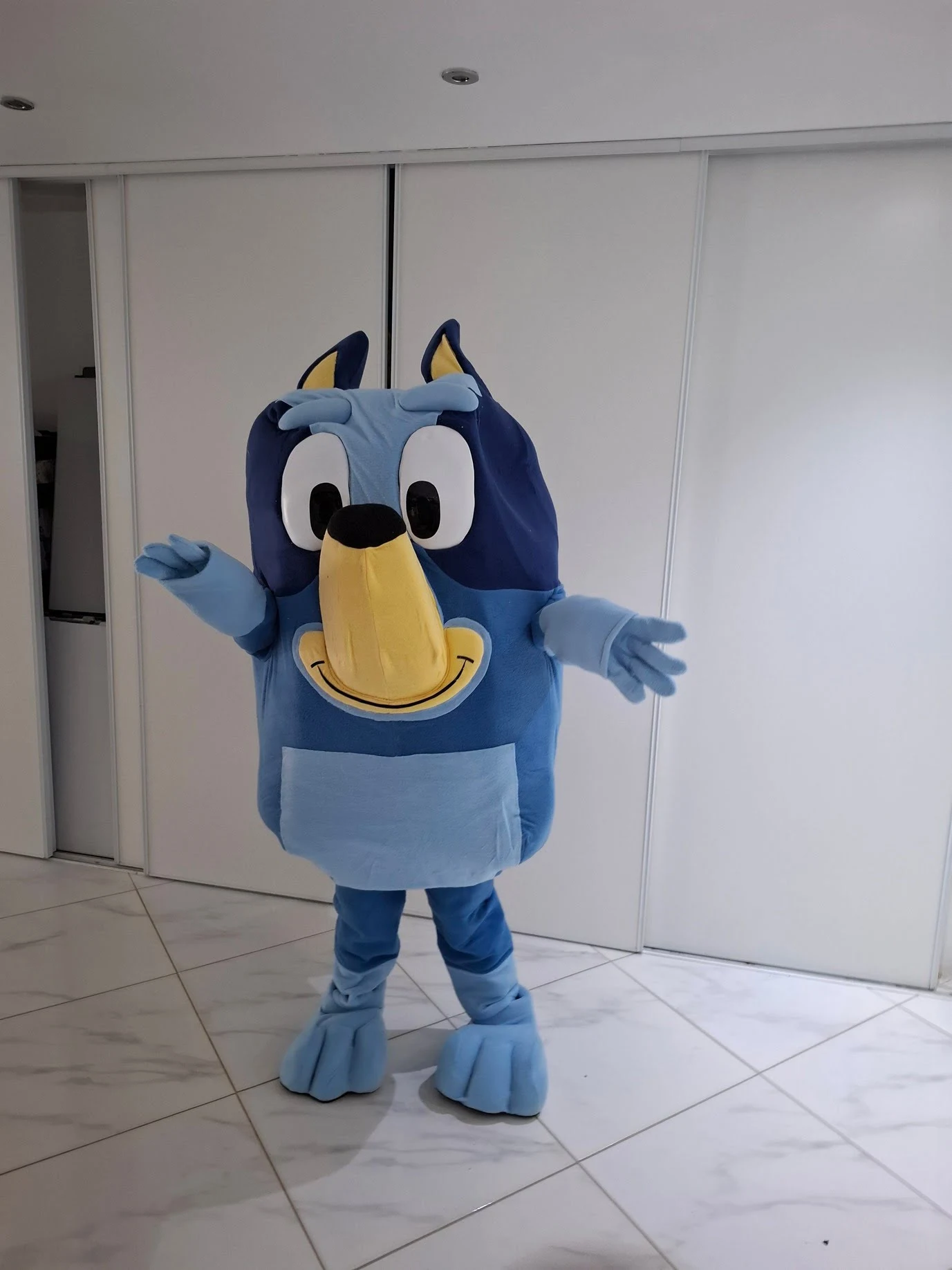 Jouez avec Bluey, l’héroïne australienne avec notre Mascotte Bluey ! Cette chienne bleue espiègle transforme chaque anniversaire en aventure imaginative mémorable. Star du dessin animé BBC primé, Bluey apporte joie, créativité et moments inoubliables lors de vos fêtes d’anniversaire petite enfance et événements jeunes enfants.