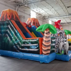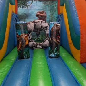 Remontez à l’ère préhistorique avec notre Parcours Gonflable Dinosaures ! Cette structure spectaculaire plonge vos enfants dans un parc Jurassic peuplé de T-Rex, Tricératops, Vélociraptor et autres créatures préhistoriques. Les obstacles variés et les visuels réalistes de dinosaures créent une aventure immersive parfaite pour les paléontologues en herbe.