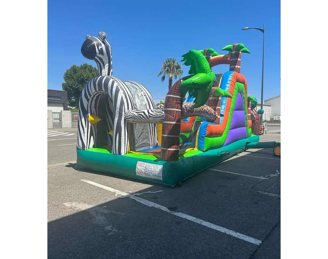 Jumploc garantit des structures homologuées aux normes EN14960, nettoyées après chaque location. Idéal pour anniversaires 5-14 ans thème safari, kermesses écoles primaires nature, centres de loisirs éducatifs, journées environnement, événements associatifs jeunesse, animations zoo. Installation comprise dans l’Agenais, le Marmandais, le Villeneuvois, Sud Gironde et Bordeaux Métropole.