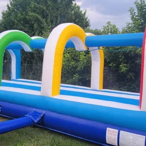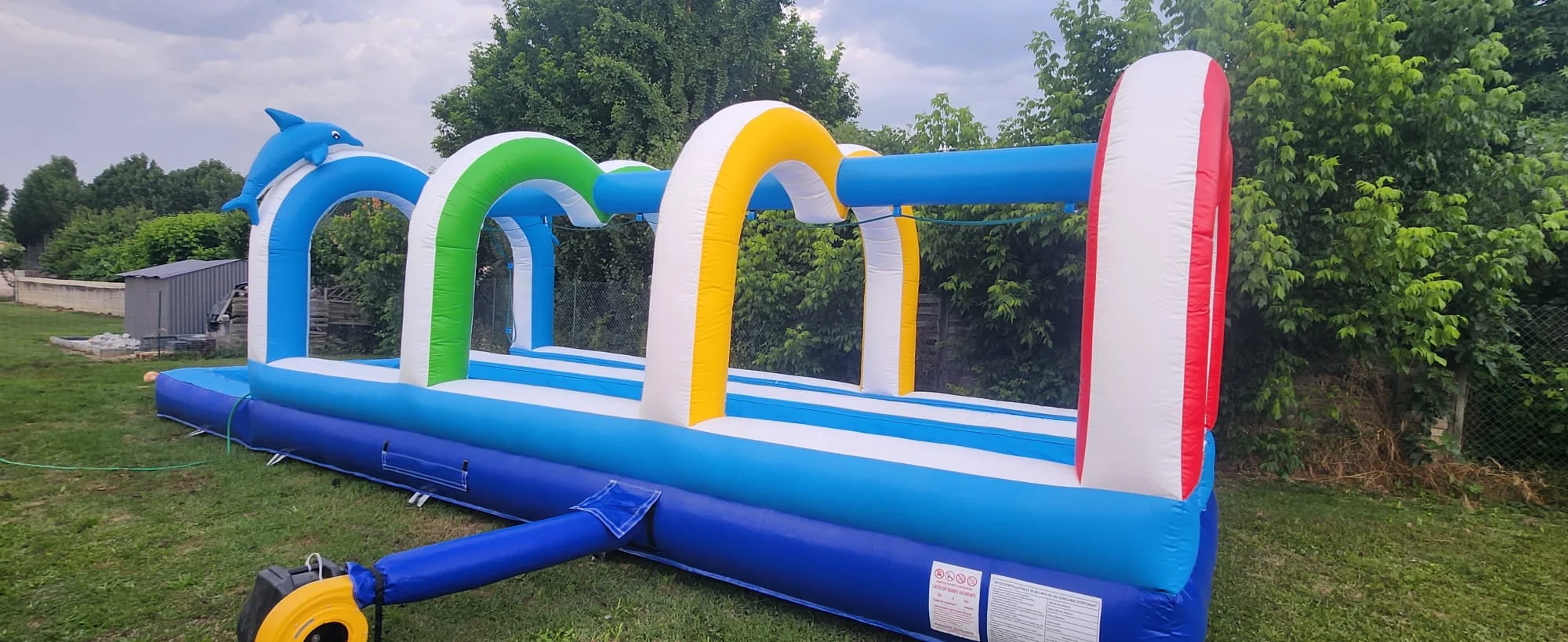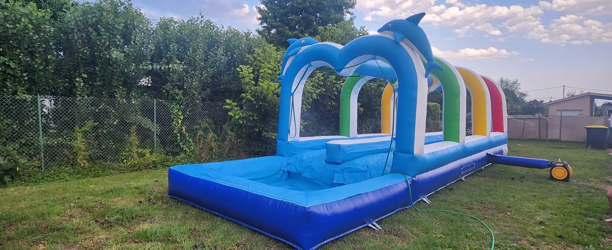 Ce toboggan aquatique combine glissade rapide et arrosage permanent pour un rafraîchissement maximal. L’installation facile avec arrivée d’eau transforme chaque fête estivale en parc aquatique, parfait pour les anniversaires d’été et les animations canicule.
