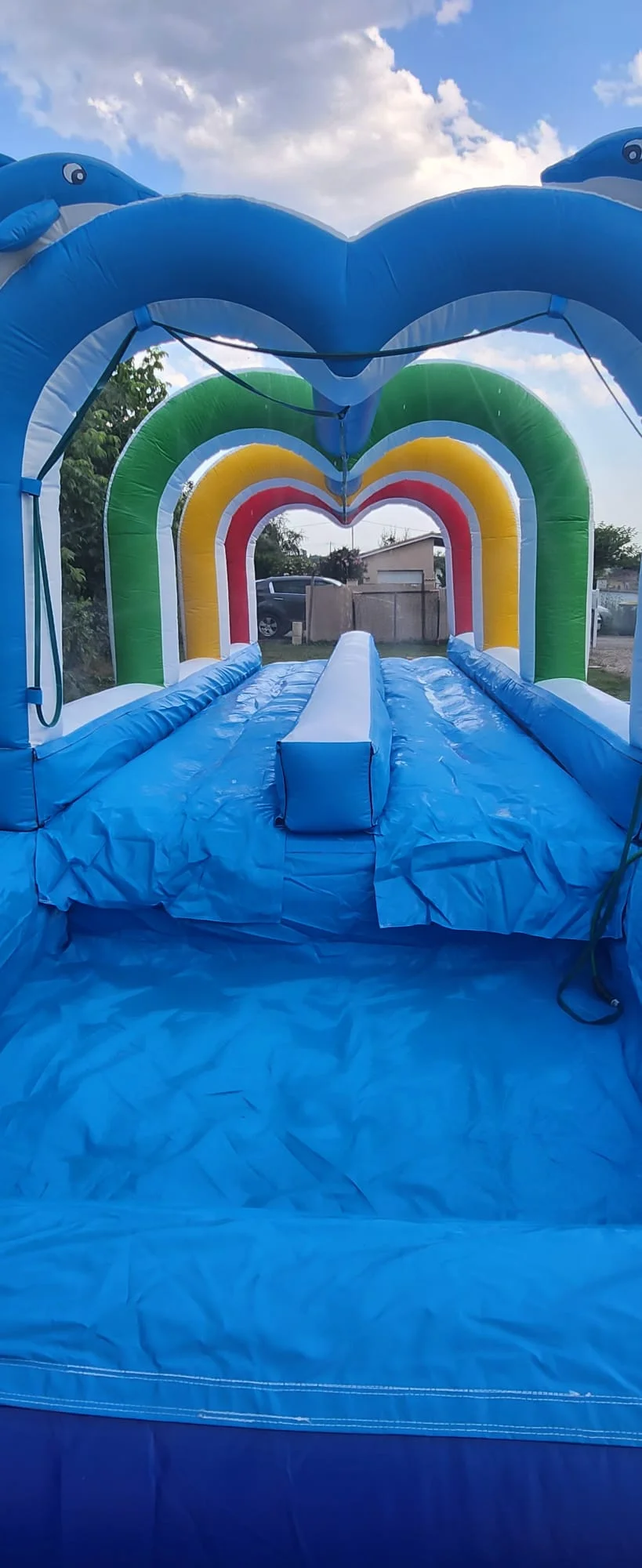 Rafraîchissez-vous avec notre Ventreglisse Aquatique Dauphin ! Cette structure spectaculaire offre une glissade géante avec jets d’eau continus pour des sensations aquatiques inoubliables. Le design dauphin bleu et les éclaboussures garantissent des heures de plaisir lors des journées chaudes d’été.